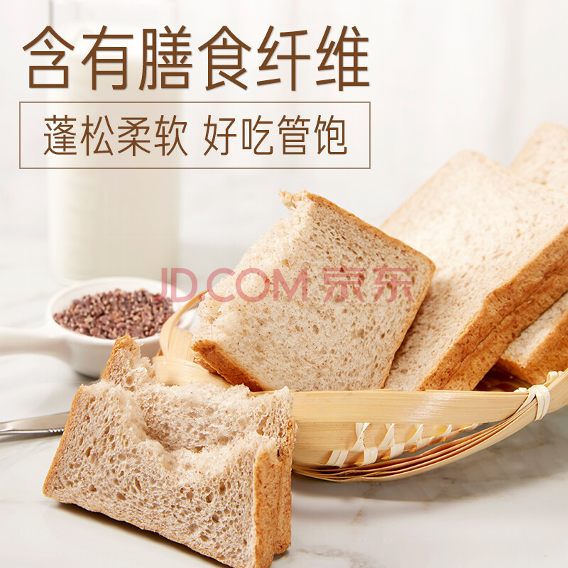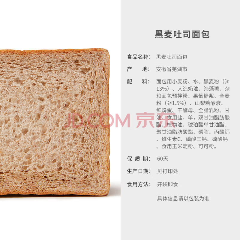 商品相册:来伊份黑麦吐司面包450g 全麦早餐轻食代餐健身糕点点心蛋糕休闲零食第