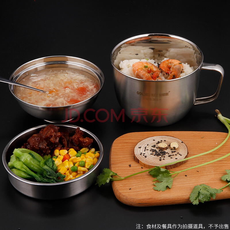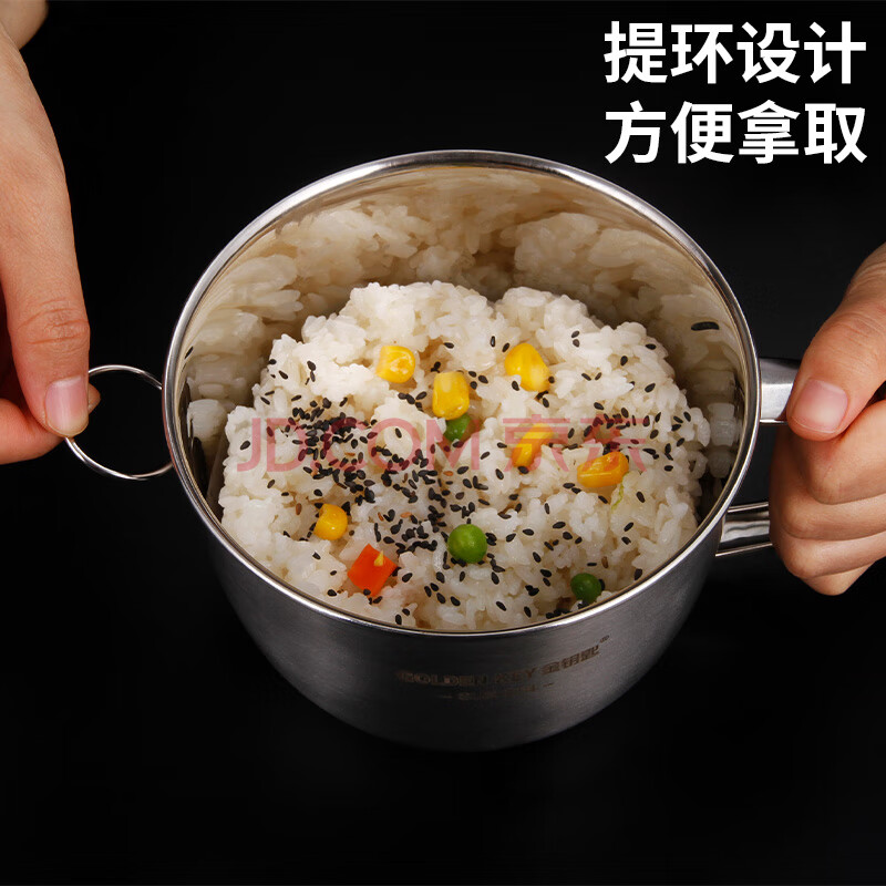 商品相册:金钥匙304不锈钢饭盒14cm二层学生便当盒食堂快餐盒快餐杯GK-A140T第