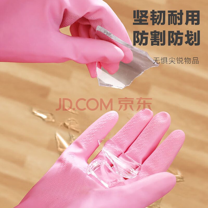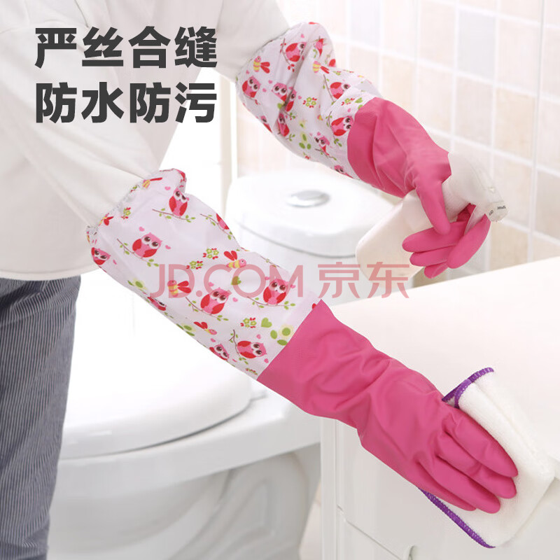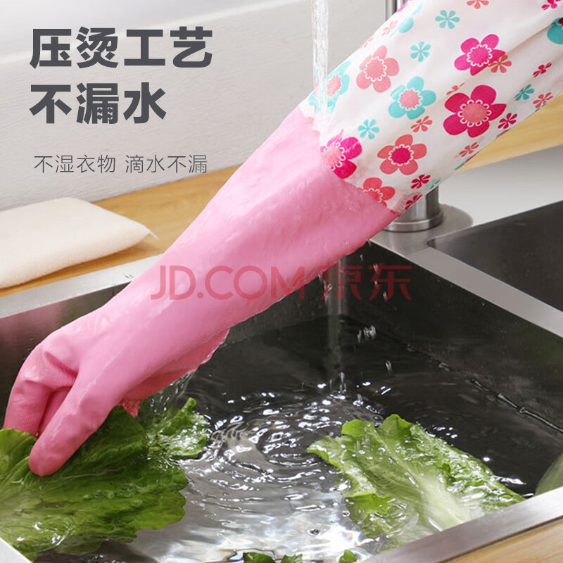 商品相册:雅高PVC手套2双装均码加绒加长型保暖款家务手套 橡胶皮手套第