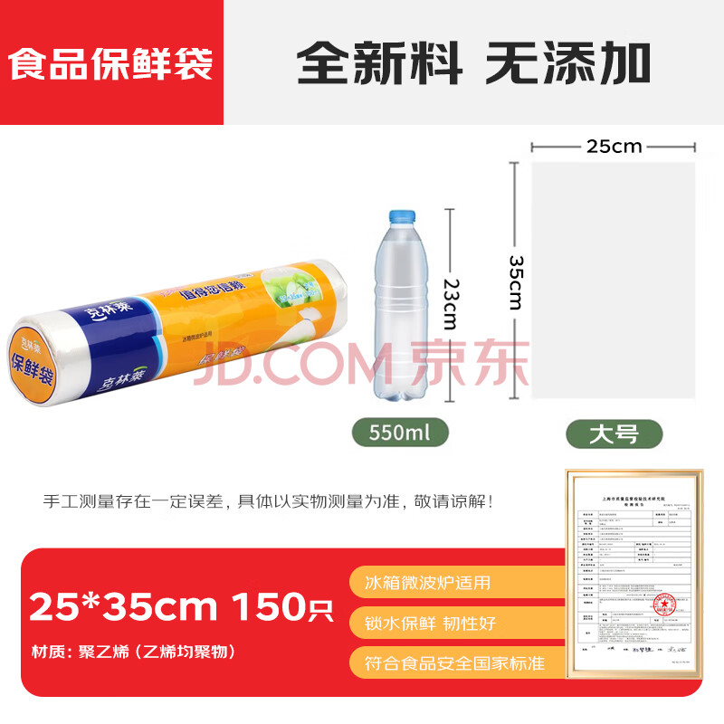 商品相册:克林莱进口原料一次性大号保鲜袋食品袋平口果蔬食品包装袋150只25*35cm第