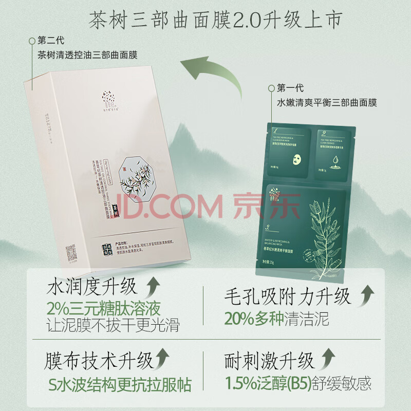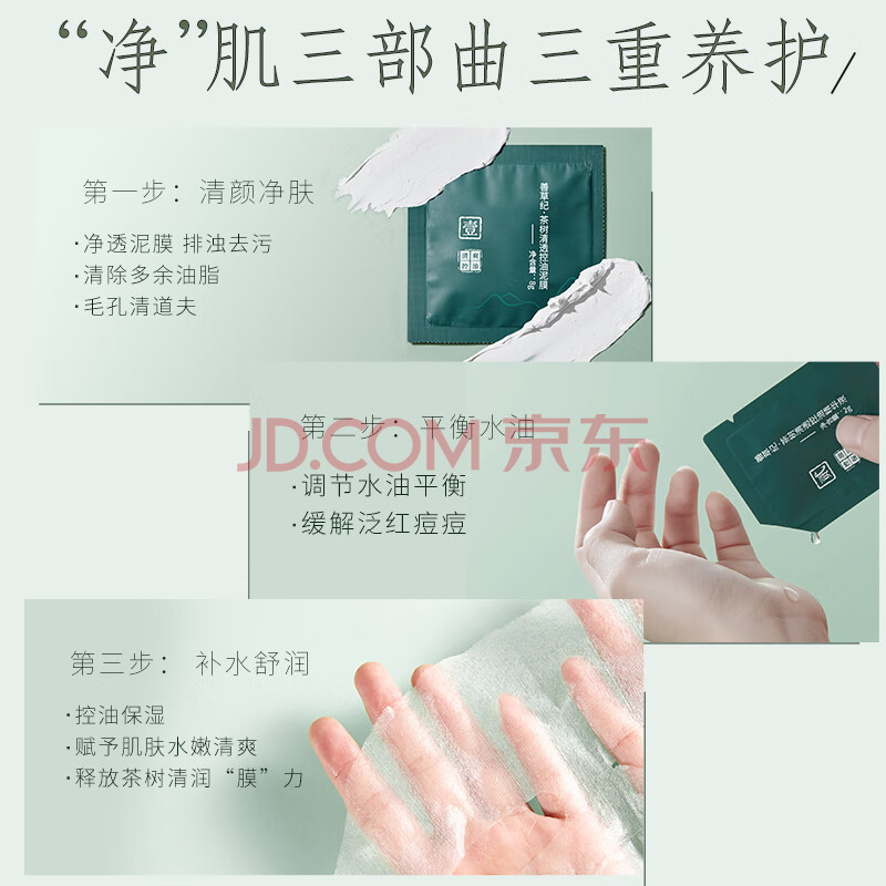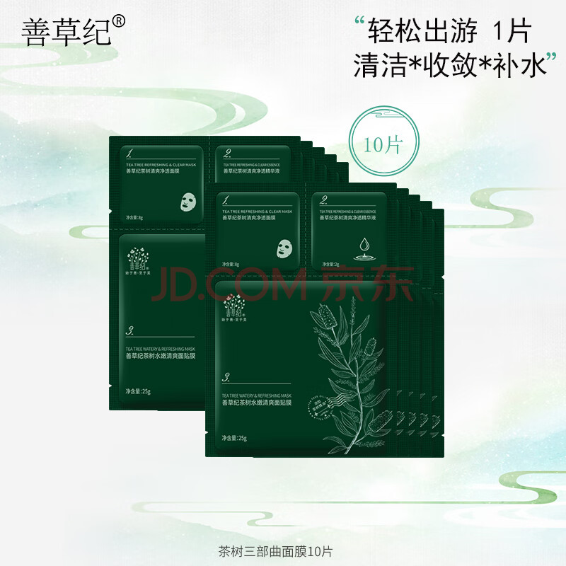 商品相册:善草纪嫩肤清爽三部曲面膜10片去角质黑头清洁修护控油收缩毛孔女神节礼第