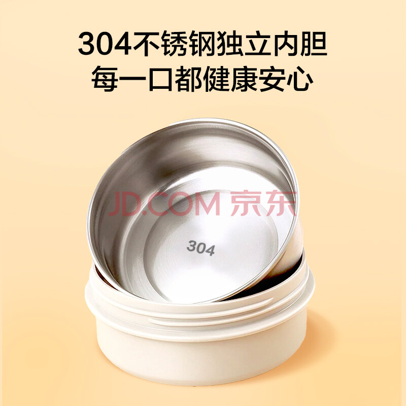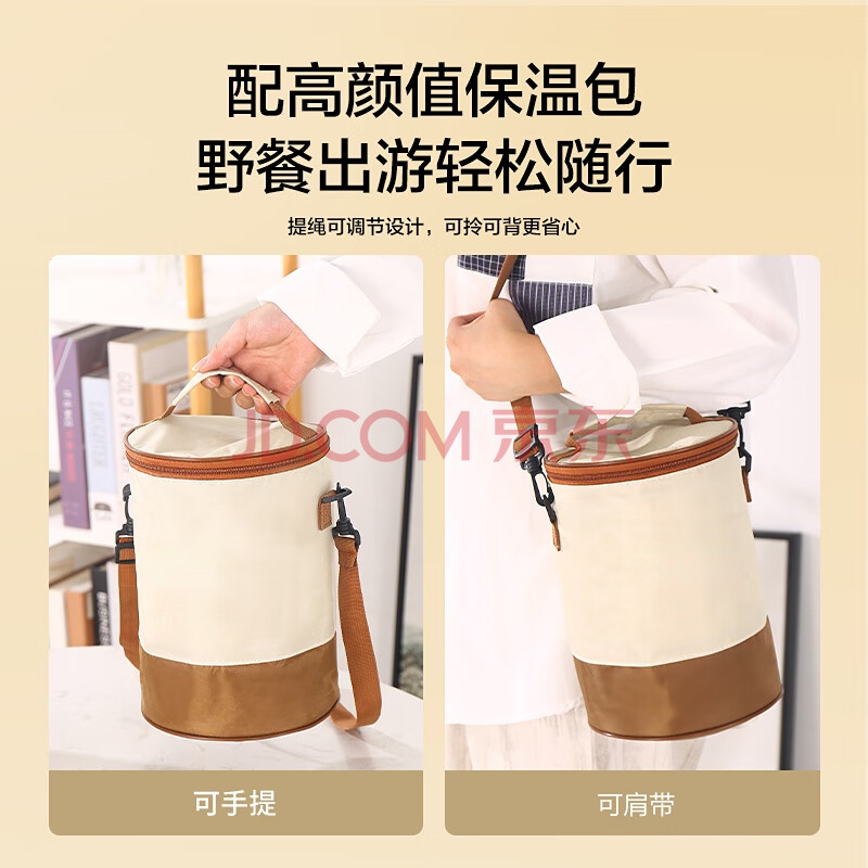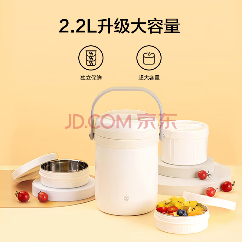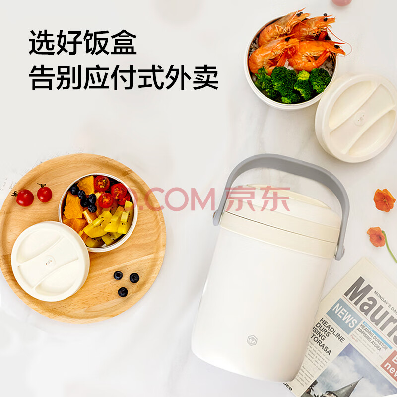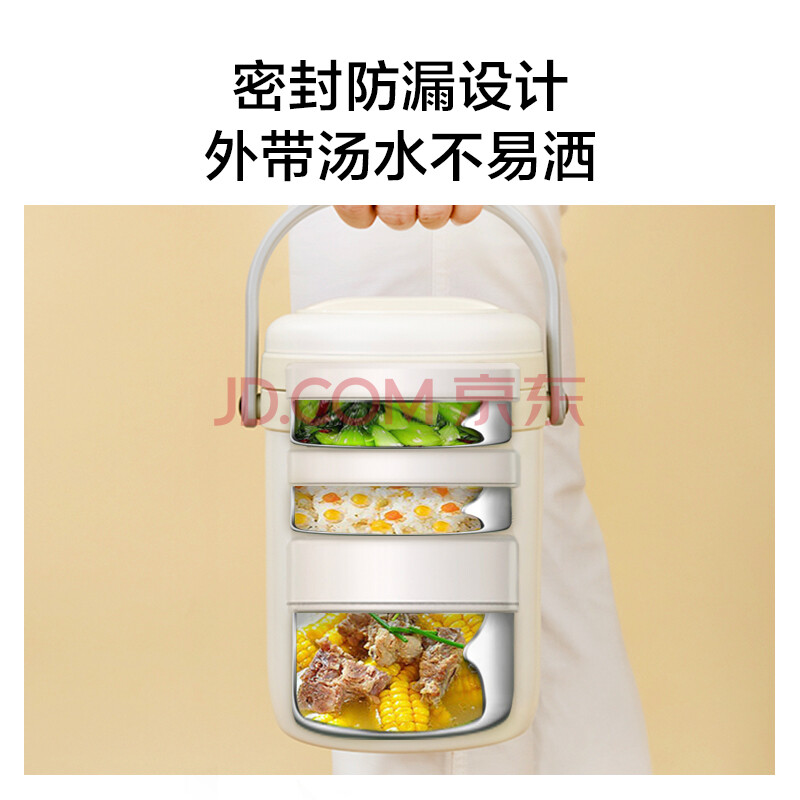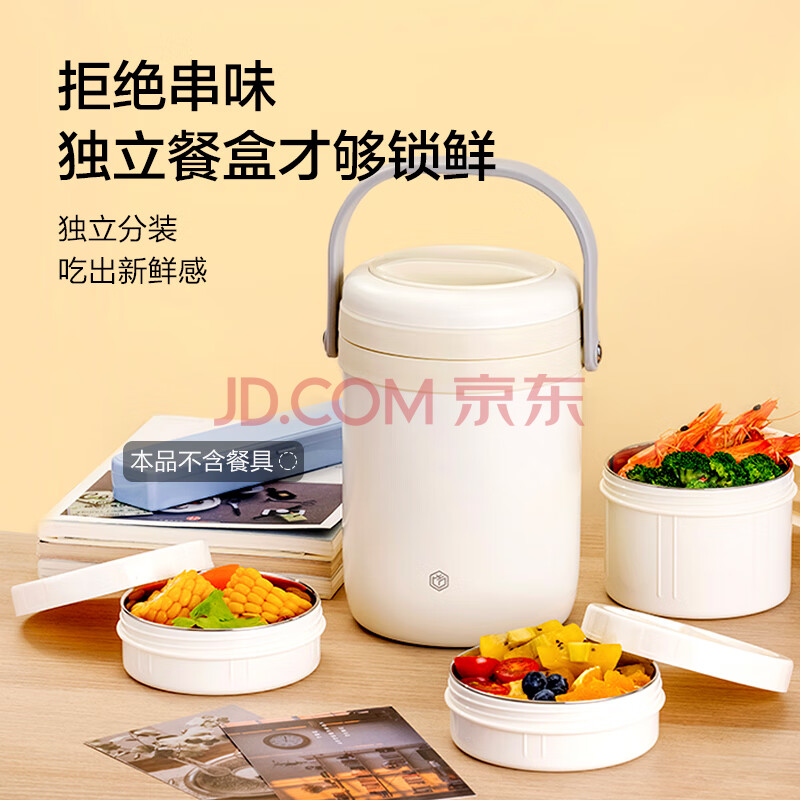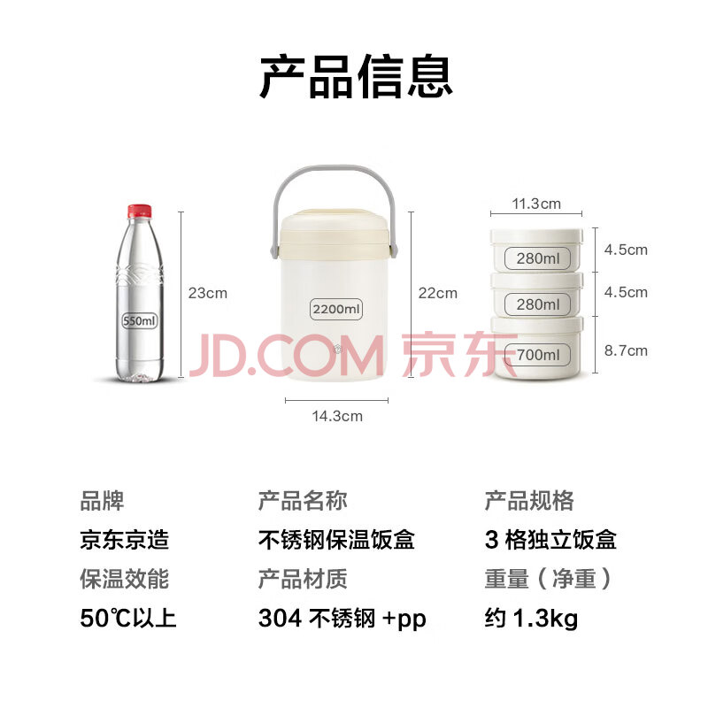 商品相册:京东京造保温饭盒 保温桶上班族304不锈钢小学生三层2.2L 配保温袋第
