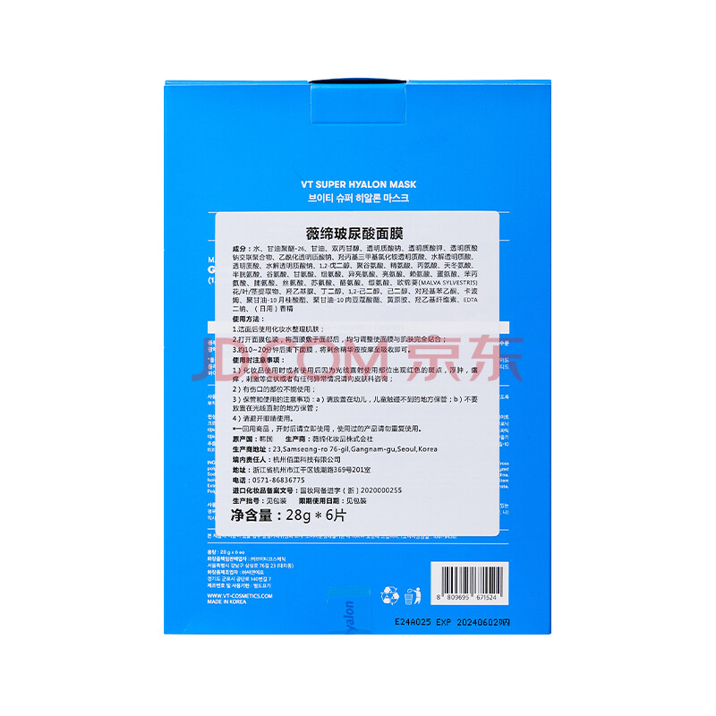 商品相册:VT玻尿酸蓝胶囊药丸面膜6片/盒 深度补水保湿男女可用新年礼物第