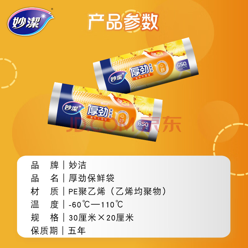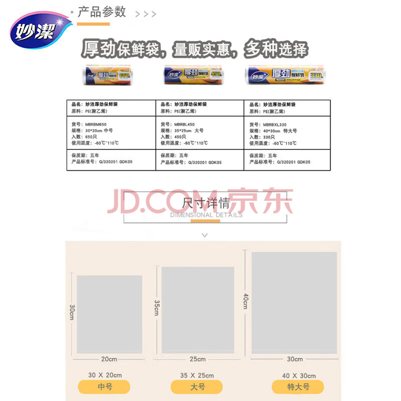 商品相册:妙洁 厚劲点断式保鲜袋 中号650只 塑料食品袋第