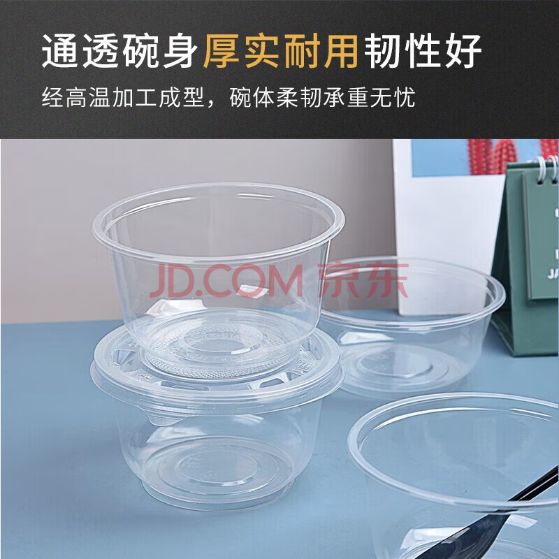 商品相册:特美居一次性碗圆形餐碗透明塑料碗食品可微波炉野炊碗不带盖360型300只第