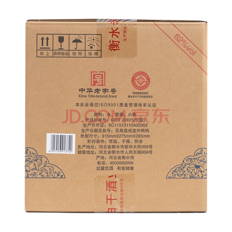 商品相册:衡水老白干手酿礼盒老白干香型白酒 62度 500ml*4瓶整箱装 纯粮礼盒节日送礼第