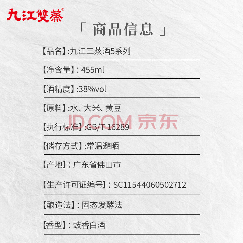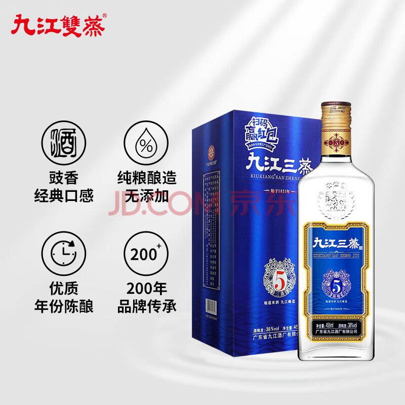 商品相册:九江双蒸豉香型白酒 五年陈系列 38度三蒸白酒礼盒455ml送礼自饮宴请第