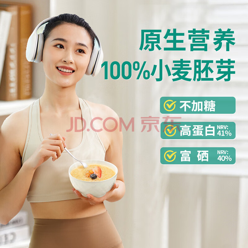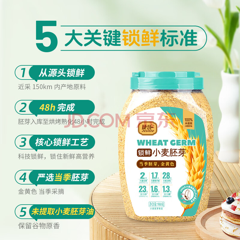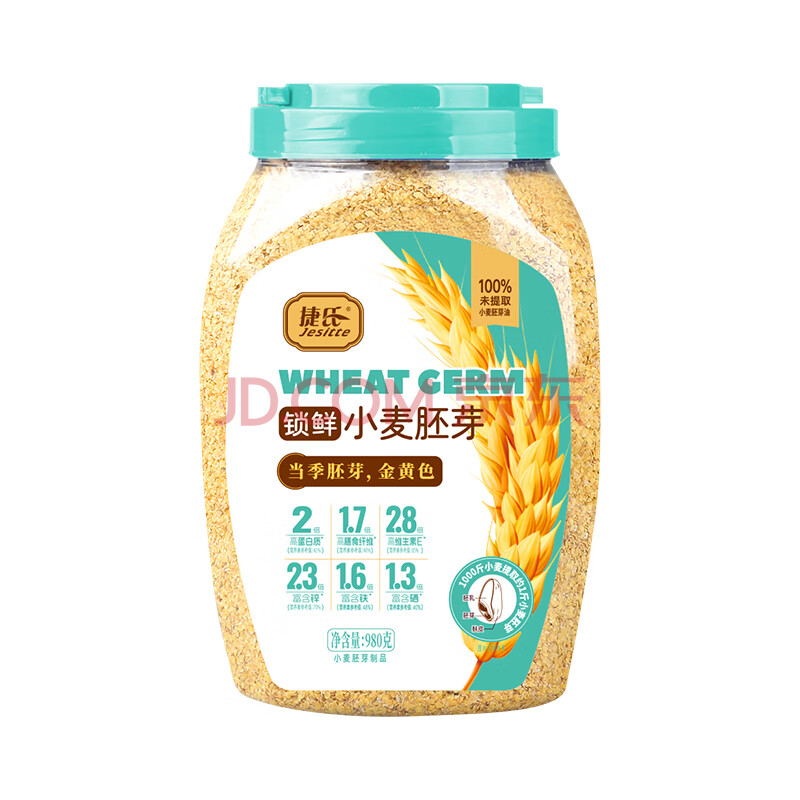 商品相册:捷氏小麦胚芽纯麦片980g无蔗糖高纤富硒健身代餐即食粗粮营养早餐麦片第