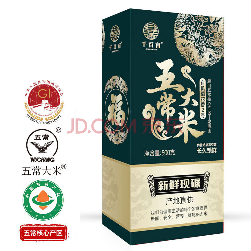 商品相册:千百亩 有机五常大米10斤新米 东北稻花2号长粒香米粳米年货礼盒装第