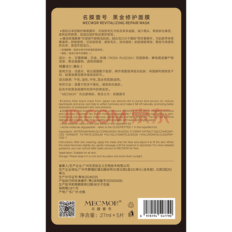 商品相册:名膜壹号(mecmor)黑金面膜补水保湿面膜清洁控油收缩毛孔提亮肤色男女护肤品送女友第