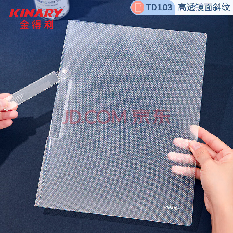 商品相册:金得利5只A4拉口报告夹旋转拉杆夹抽杆夹加厚透明镜面斜纹文件夹资料夹会议夹学生试卷收纳整理夹子TD103第