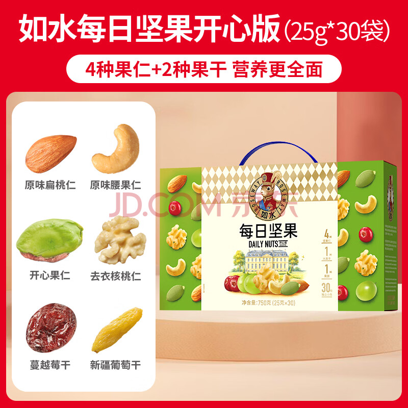 商品相册:如水 每日坚果750g 开心款礼物礼盒营养混合干果休闲零食送礼第