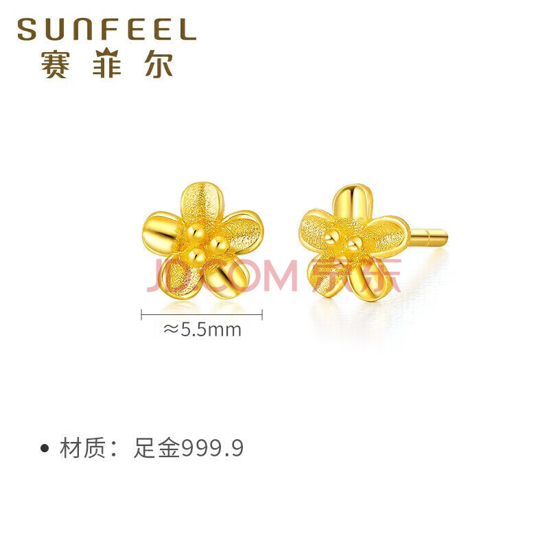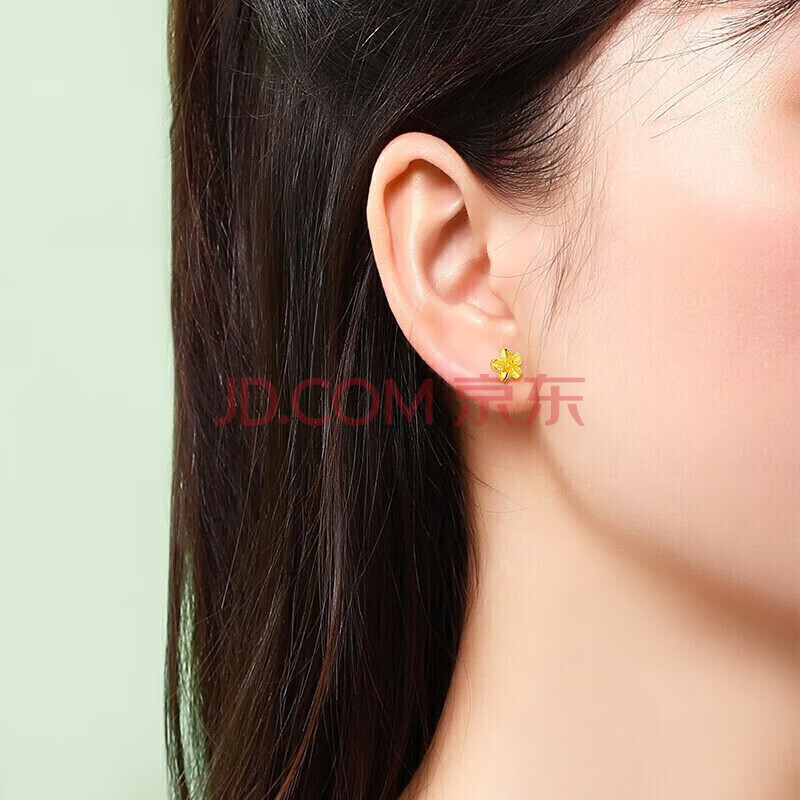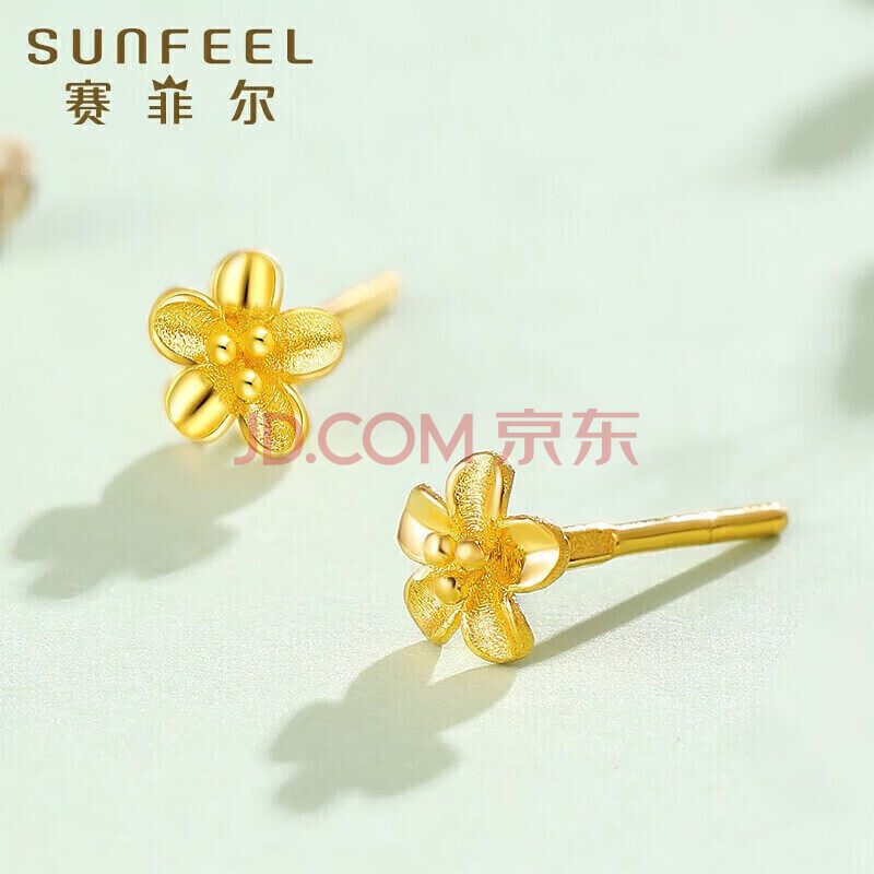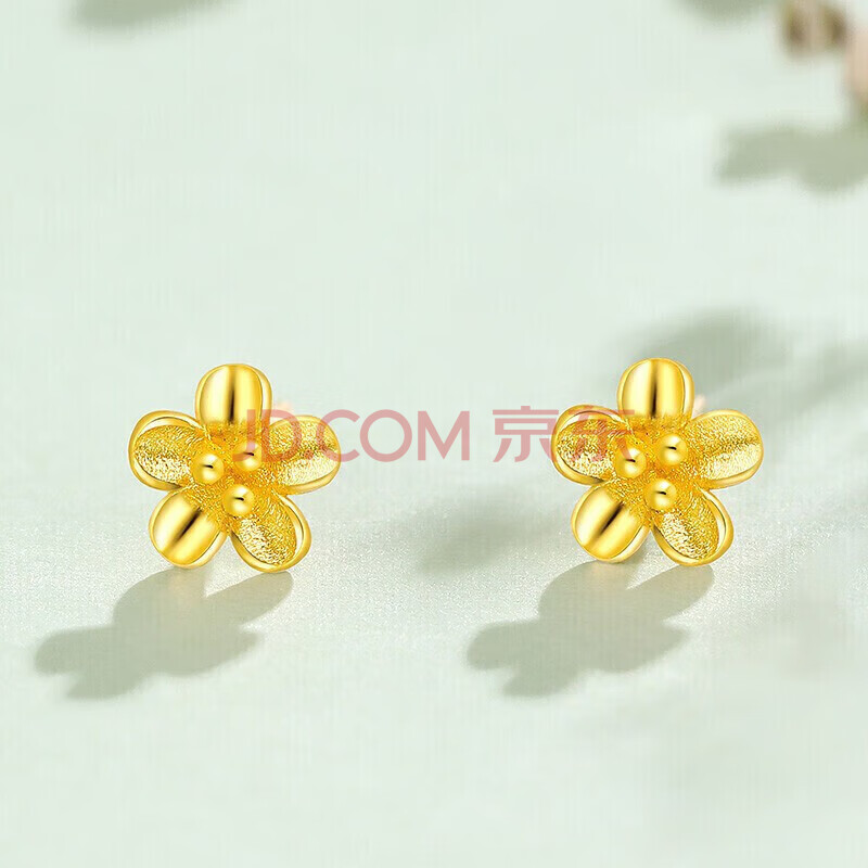 商品相册:赛菲尔黄金耳钉女足金999.9桃花小清新金花耳环耳饰送女友一对 约0.75克第