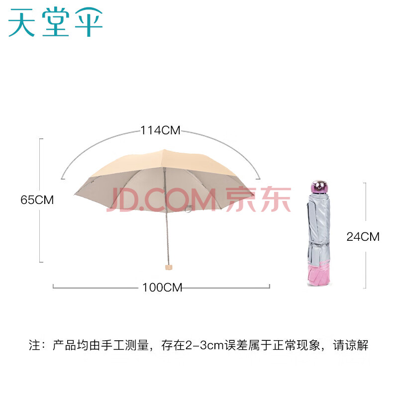 商品相册:天堂 防紫外线晴雨伞三折银胶防晒太阳伞遮阳伞57*8骨 藕仁米第