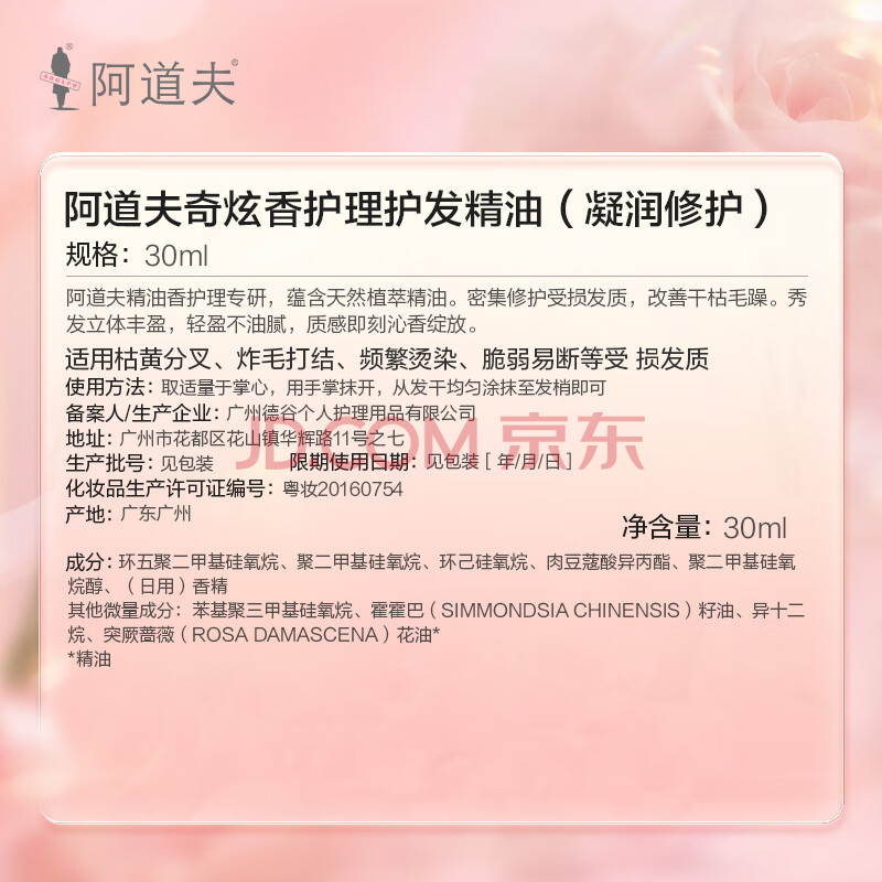 商品相册:阿道夫护发精油凝润修护精油30ml 头发精油防毛躁卷发直发烫后护卷第
