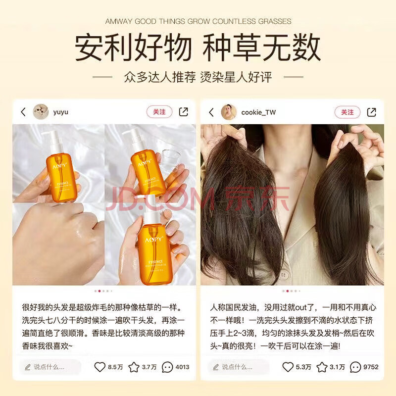 商品相册:AOPY精粹亮泽护发精油 防毛躁柔顺干枯受损烫发卷发留香护发烫后护卷第