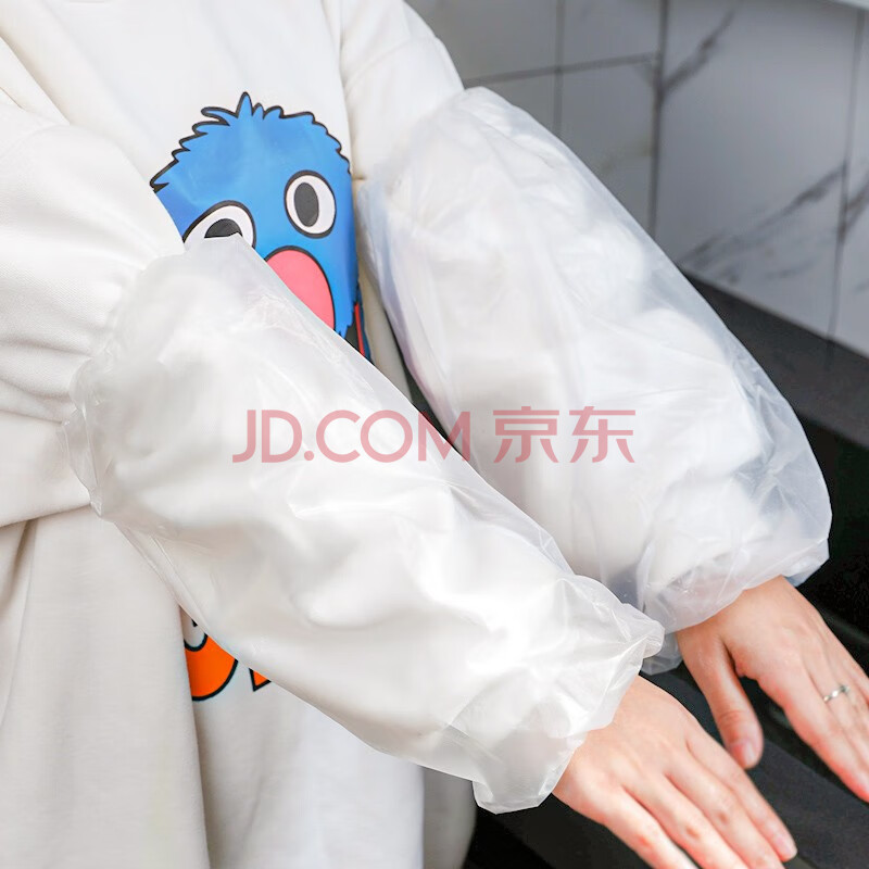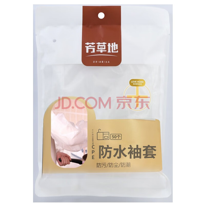 商品相册:芳草地一次性袖套50只加厚PE家务袖套防水防油加大加长保洁防尘护袖套第