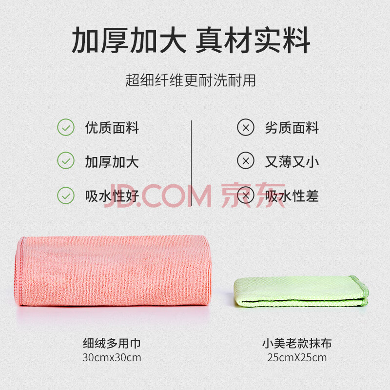 商品相册:美丽雅纤维抹布30*30cm6片家政厨房清洁毛巾去污不易留痕掉毛加大加厚第