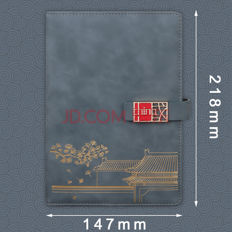 商品相册:XYBP a5笔记本子商务记事本中国风大学生日记简约办公会议记录本厂家直发 可定制 文字扣通用灰蓝色(192页)第