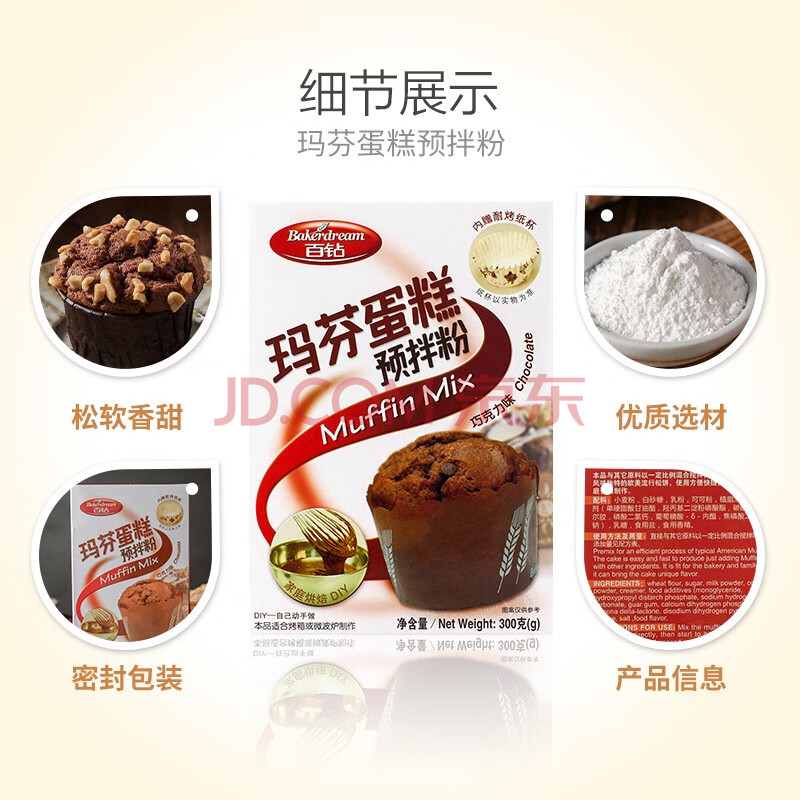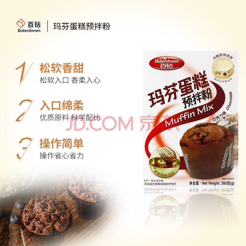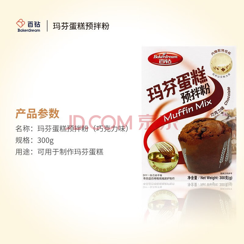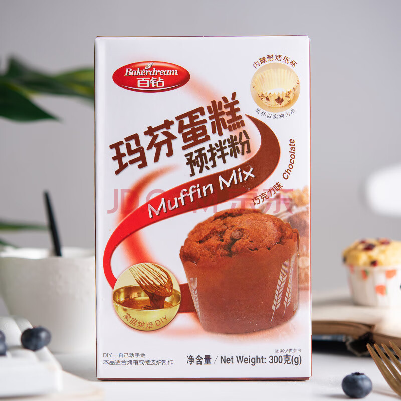 商品相册:百钻玛芬蛋糕预拌粉巧克力味300g家用马芬蛋糕材料 烘焙纸杯蛋糕原料第