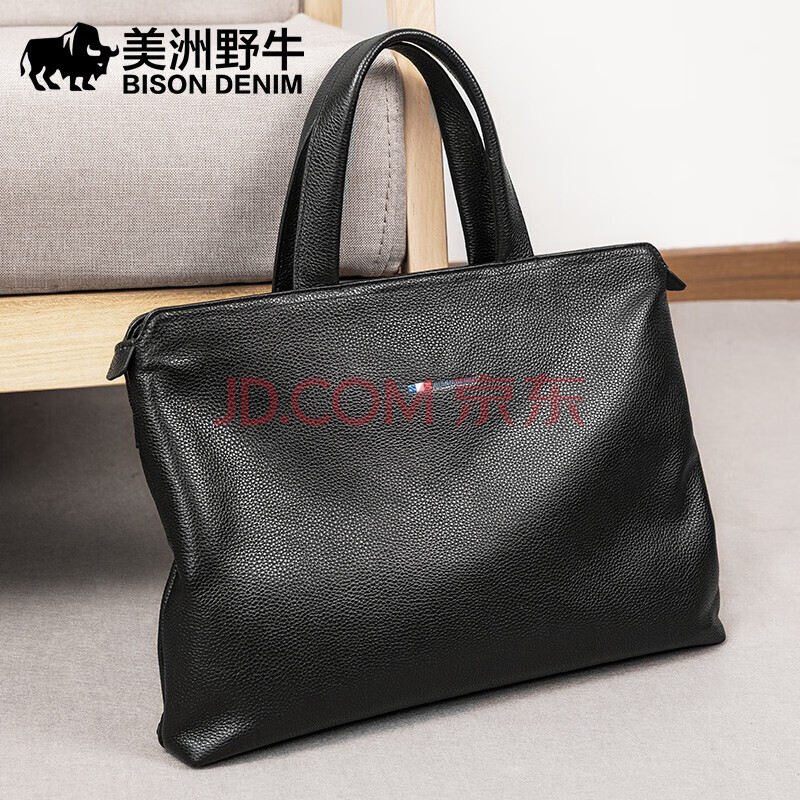 商品相册:美洲野牛男士公文包真皮商务包男手提电脑包头层牛皮包礼物送男友第