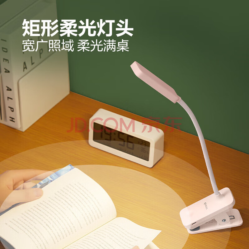 商品相册:公牛(BULL)台灯ML-D004P-FD充插两用家用床头宿舍LED夹子台灯3档亮度粉色第