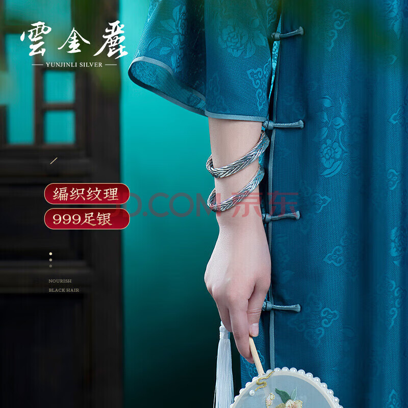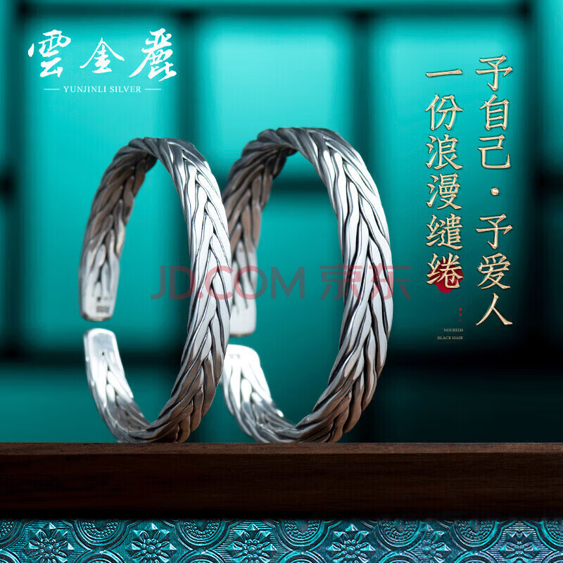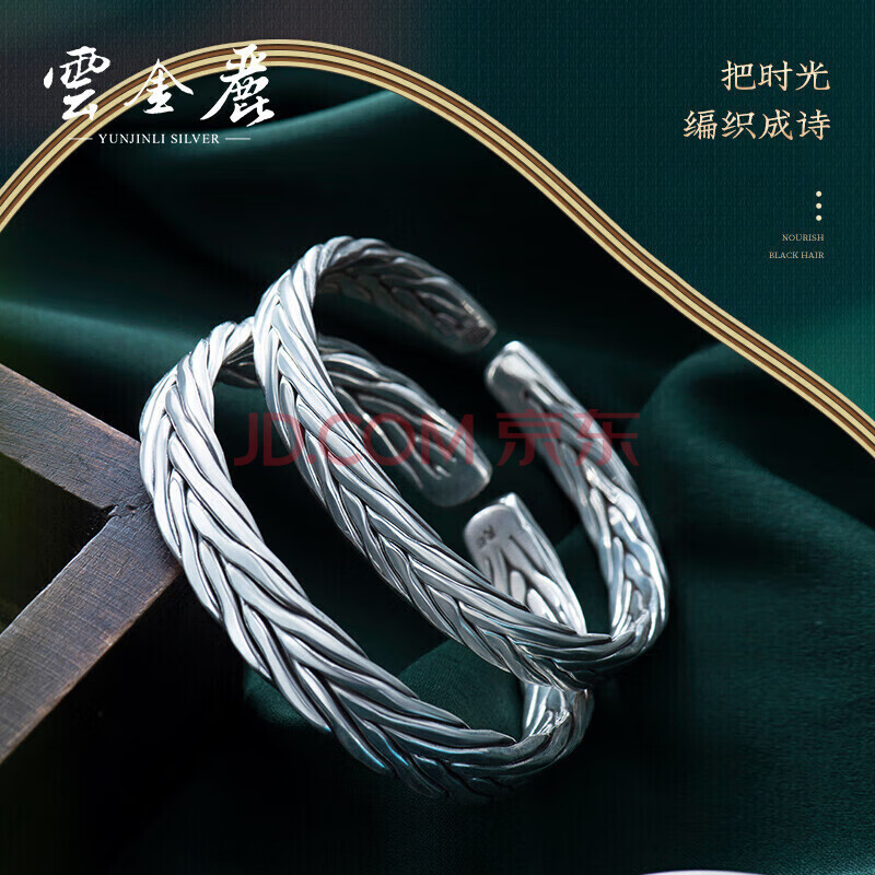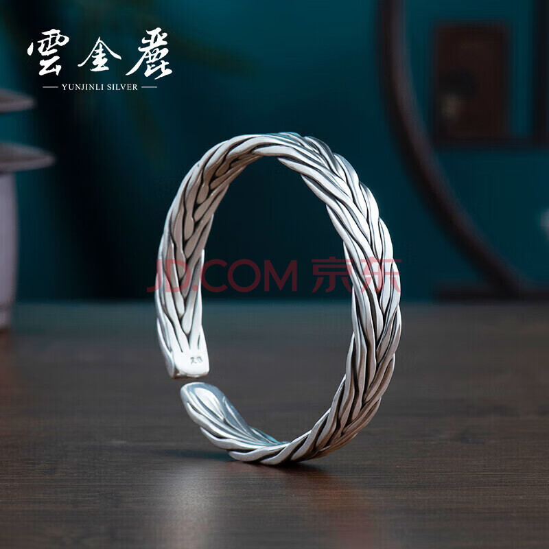 商品相册:云金丽银手镯999足银男经典银饰情侣手镯编织时光银镯子送男友生日礼物第1张/共8