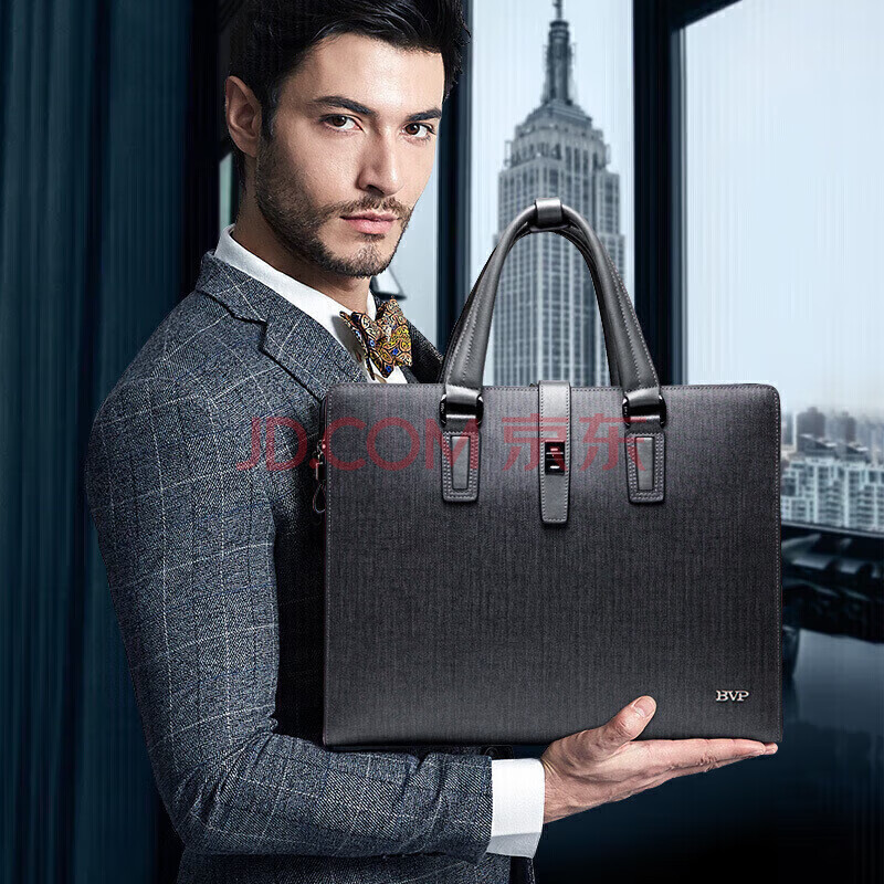 商品相册:BVP男士手提包商务公文包男牛皮锁扣男包简约横款手提包生日礼物第