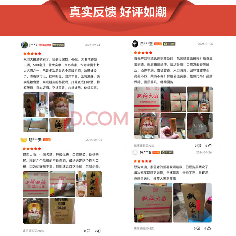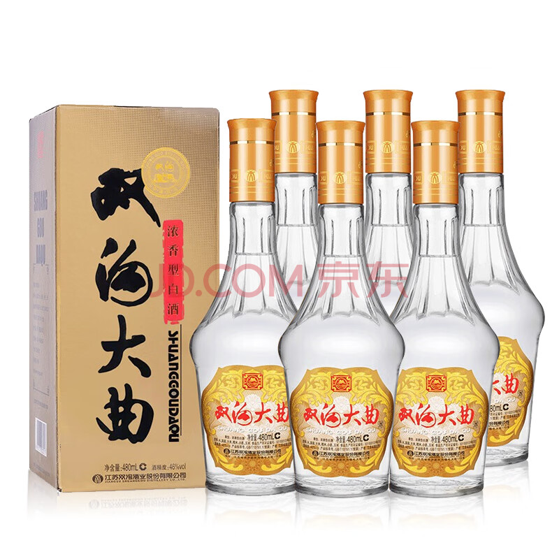 商品相册:双沟大曲 名玻 浓香型白酒 46度 480ml*6瓶 整箱装 纯粮食酒第