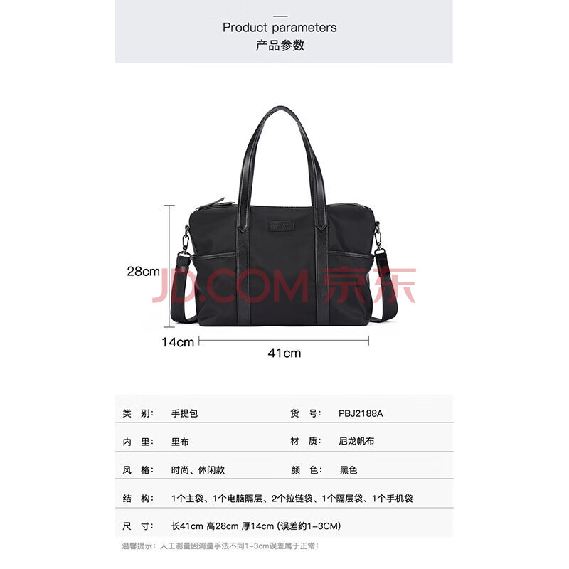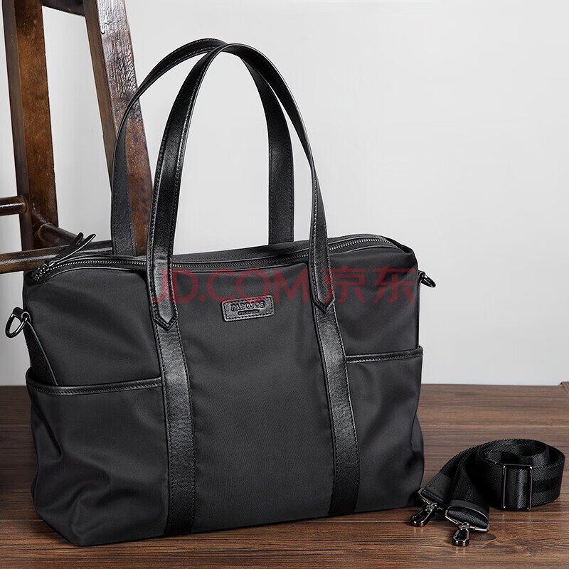 商品相册:派保爵男包商务公文包男士手提包大容量电脑包复合帆布配头层牛皮旅行包第