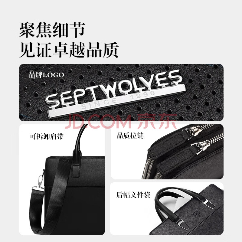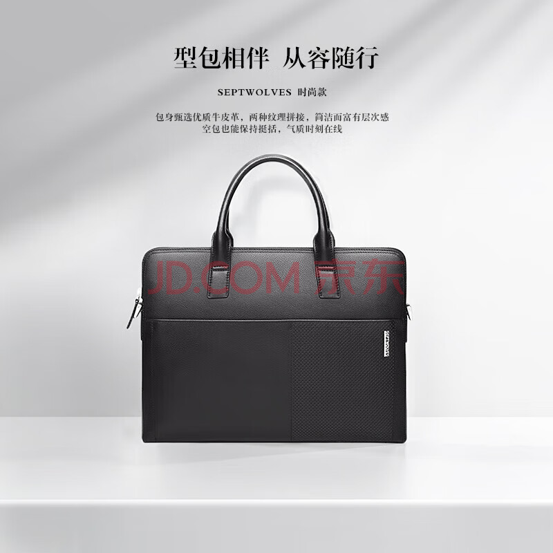 商品相册:七匹狼商务男士公文包手提头层牛皮大容量双层男士手提包教师节礼物14寸第