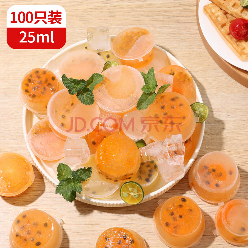商品相册:拜杰一次性酱料盒百香果分装盒冷冻小盒子打包盒圆形杯蘸料25ml100只第
