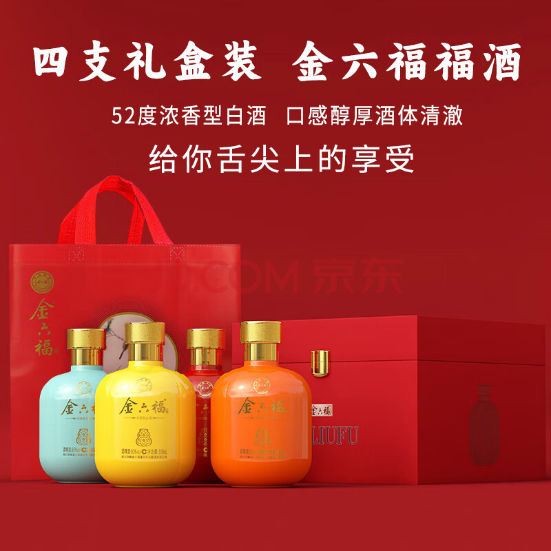 商品相册:金六福 福锐 柿柿如意 52度 500ml*4瓶 礼盒装 浓香型白酒 宴请送礼酒水第