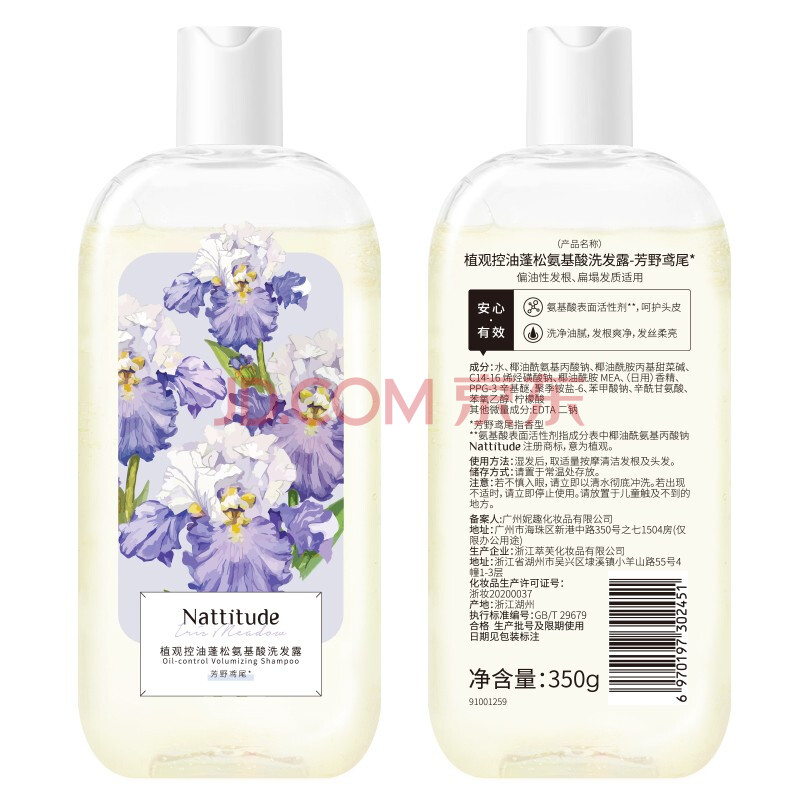 商品相册:植观控油蓬松氨基酸洗发水350g芳野鸢尾温和无刺激发质柔顺无硅油第