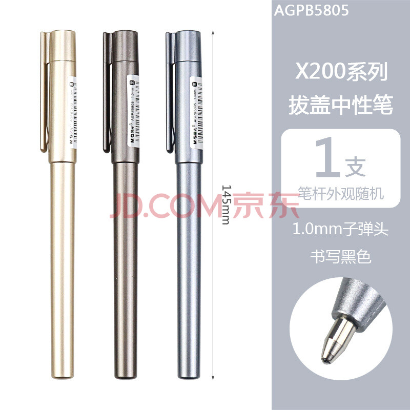 商品相册:晨光(M&G)文具AGPB5805/1.0mm X200系列金属质感中性笔子弹头商务办公签字笔 黑色 12支/盒 1盒装第