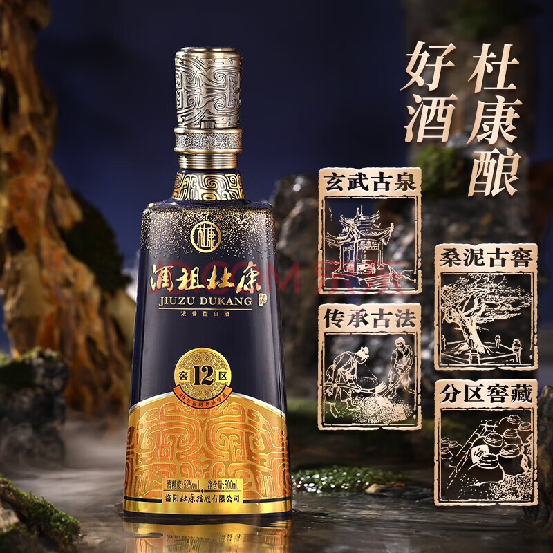 商品相册:杜康酒祖杜康12窖区 浓香型白酒 52度 500ml*4瓶 整箱装 聚会送礼第