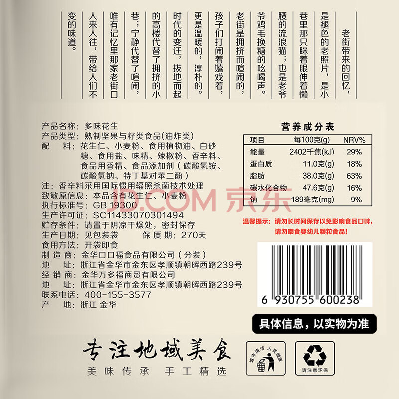 商品相册:老街口 多味花生200g/袋 每日坚果 坚果炒货休闲零食小吃带壳花生仁年货第