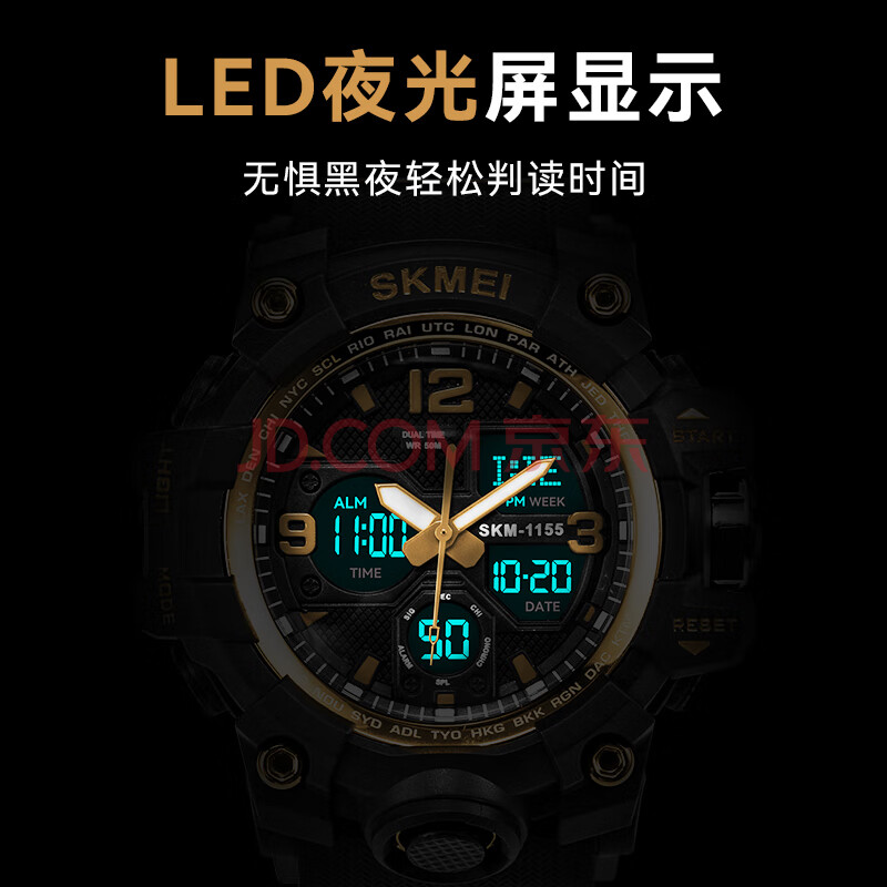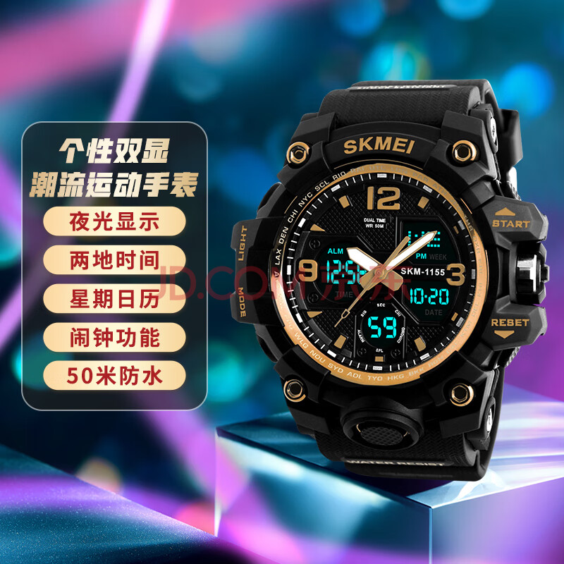 商品相册:时刻美(skmei)学生手表潮流双显防水闹钟运动电子表初高中生青少年儿童男1155B第
