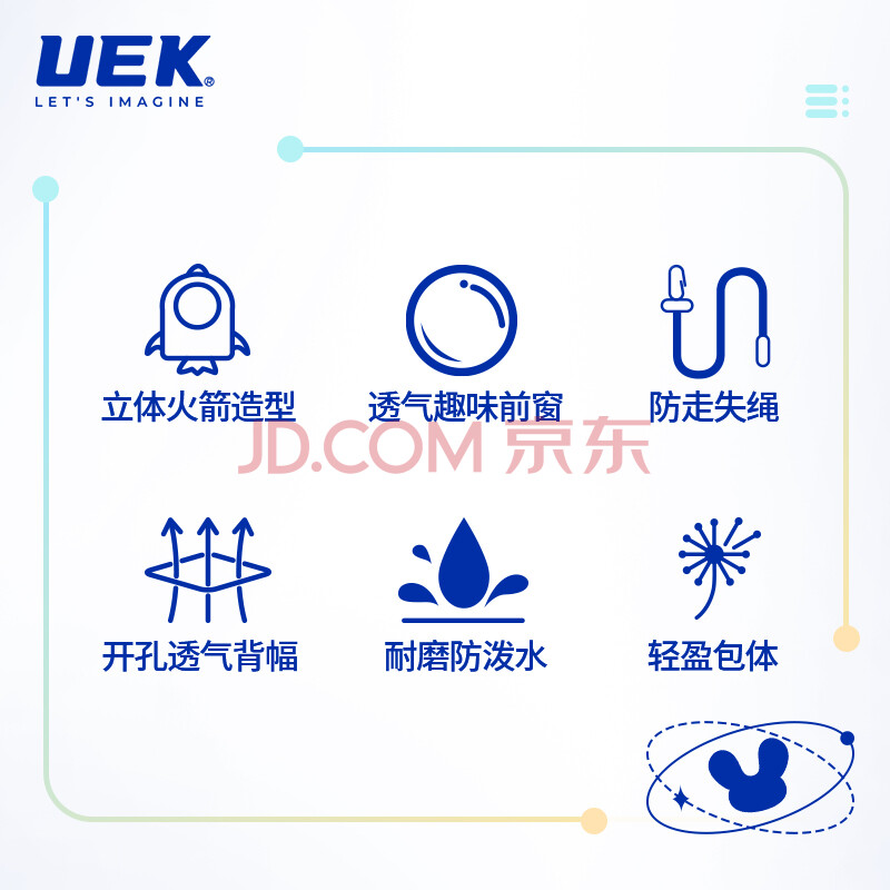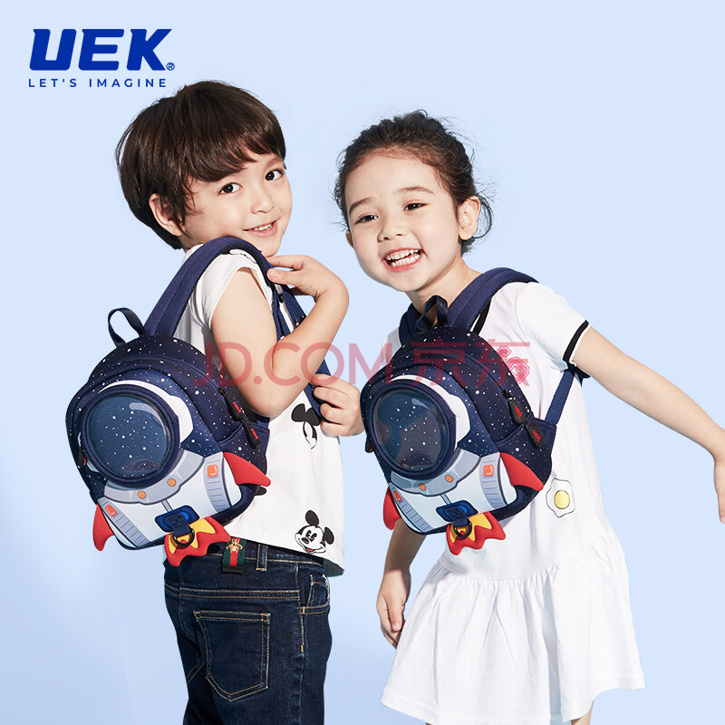 商品相册:UEK防走失背包宝宝男女1-3-6岁幼儿园防走丢火箭大号蓝色儿童小书包第