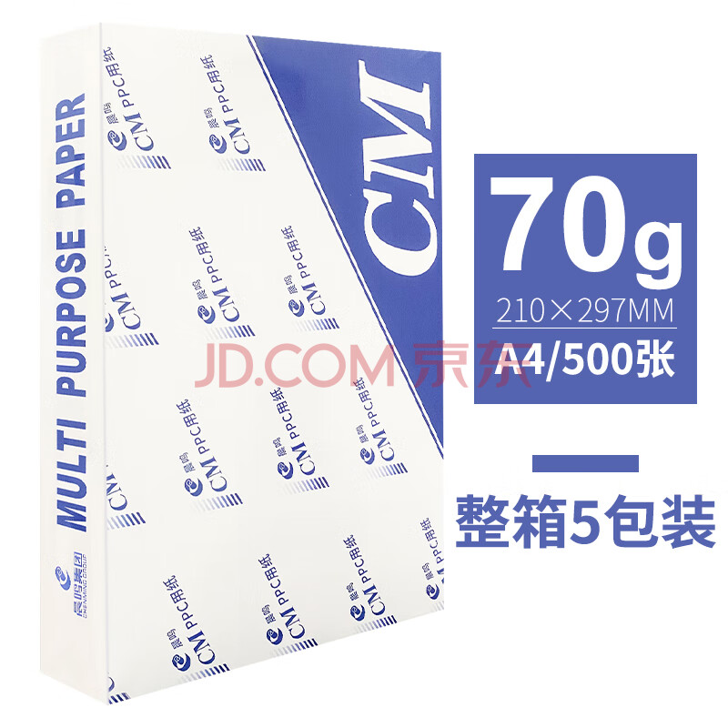 商品相册:晨鸣CM 70g A4 白包多功能复印纸 500张/包 5包/箱(2500张)第