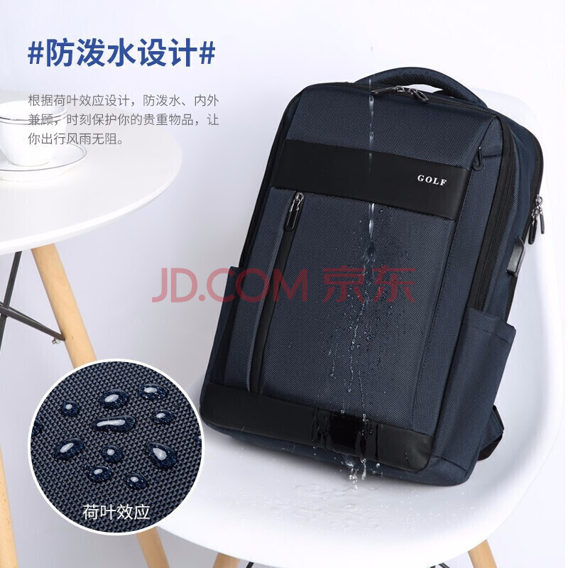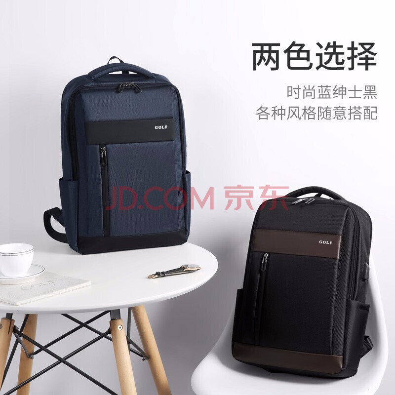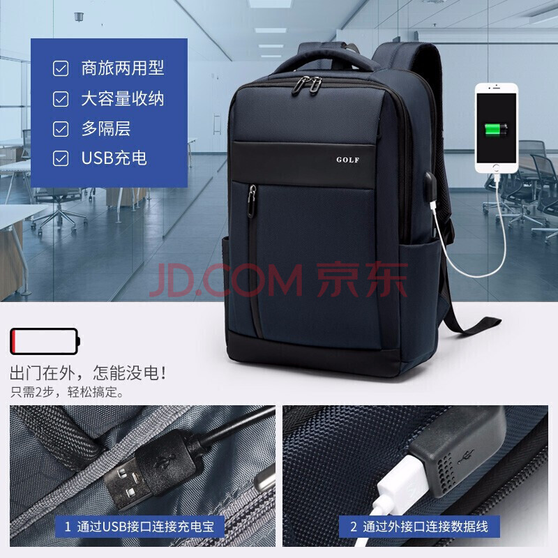 商品相册:高尔夫(GOLF)电脑包15.6英寸笔记本双肩电脑背包USB装置商务男士出差旅行背包第