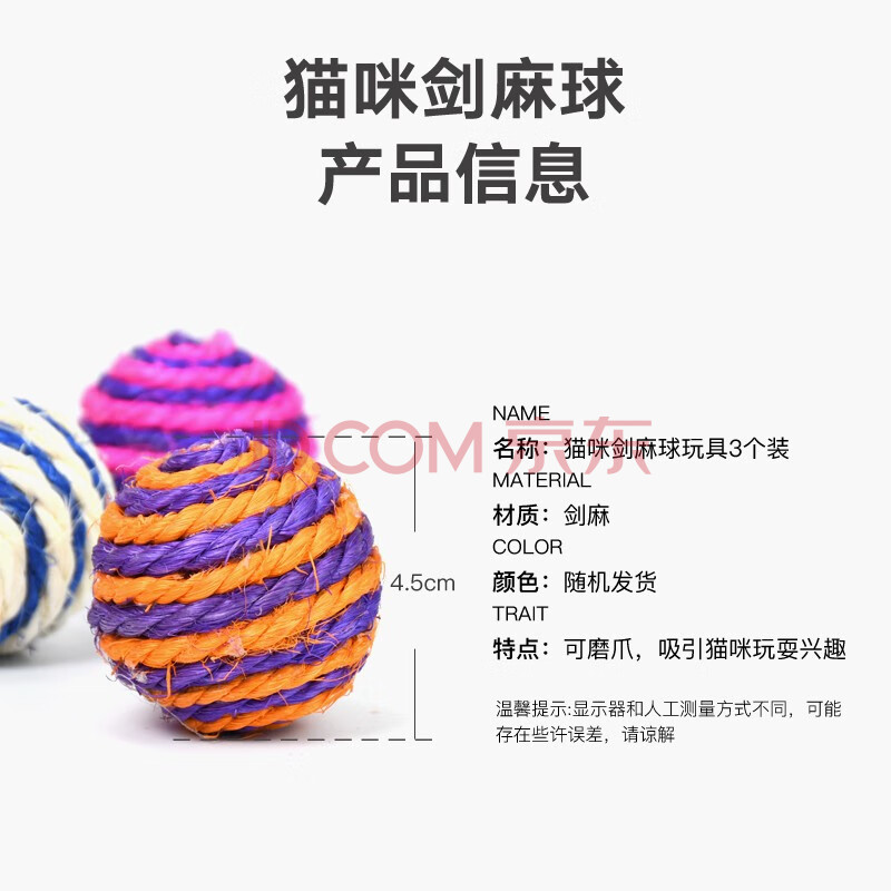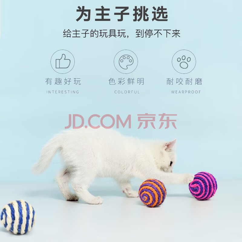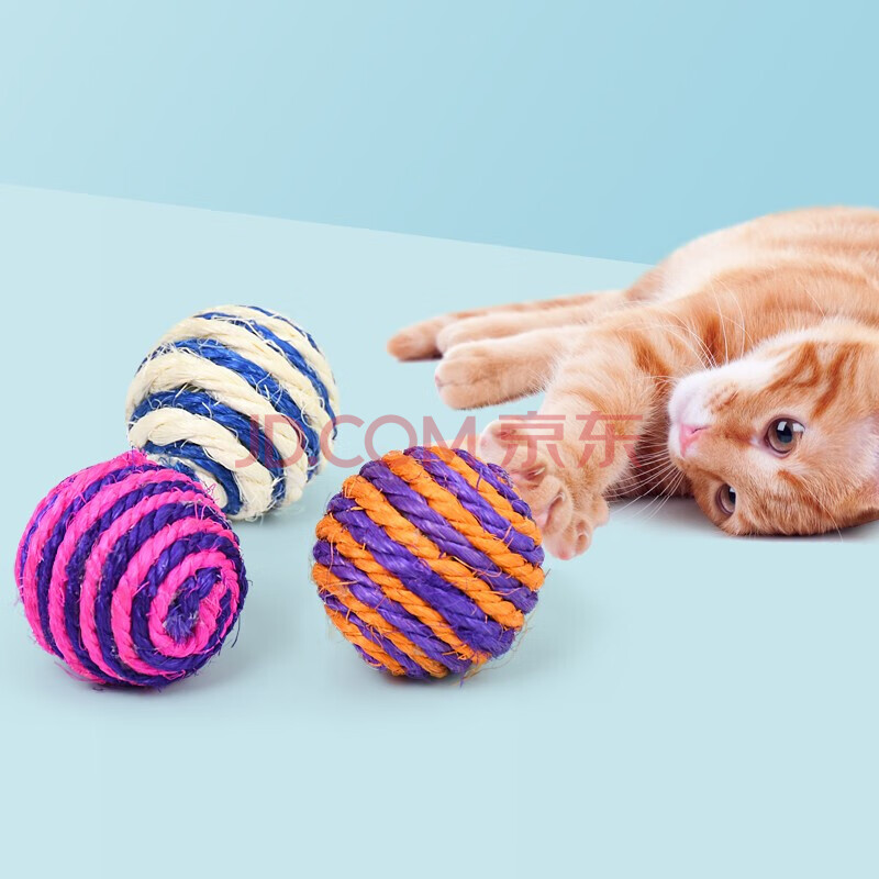商品相册:憨憨乐园 猫玩具球逗猫猫咪自嗨神器球自动磨牙剑麻球颜色随机3个装第