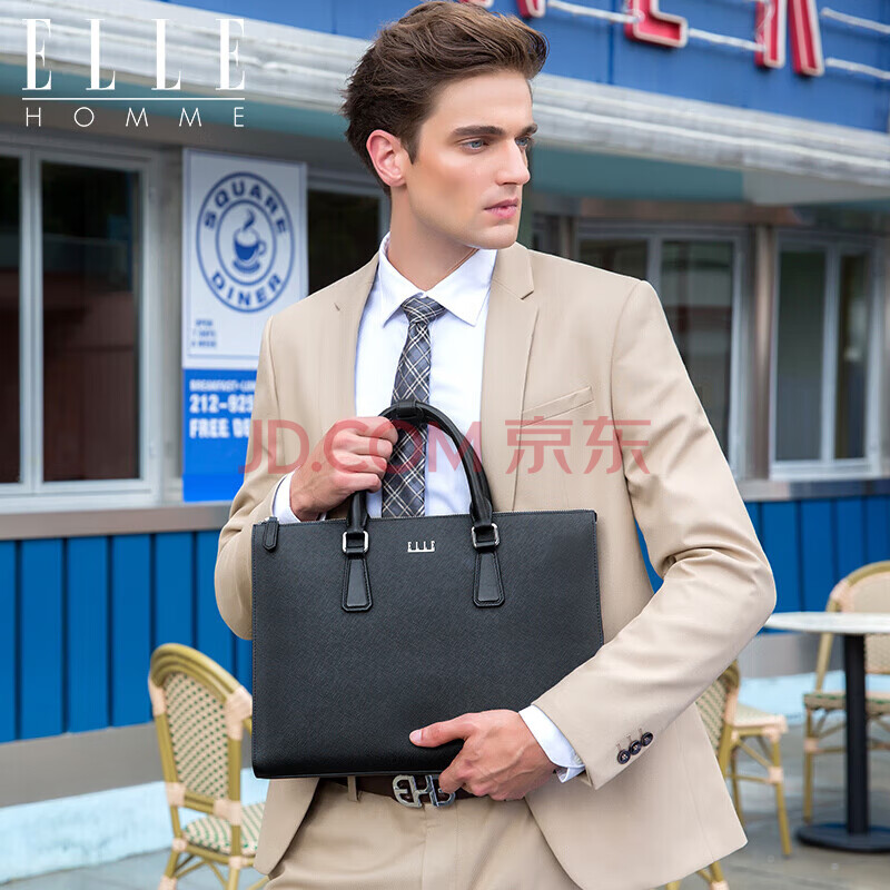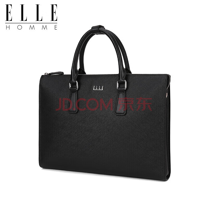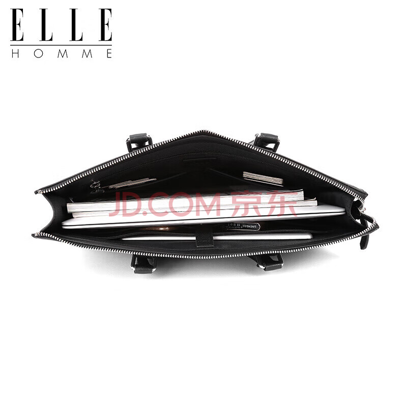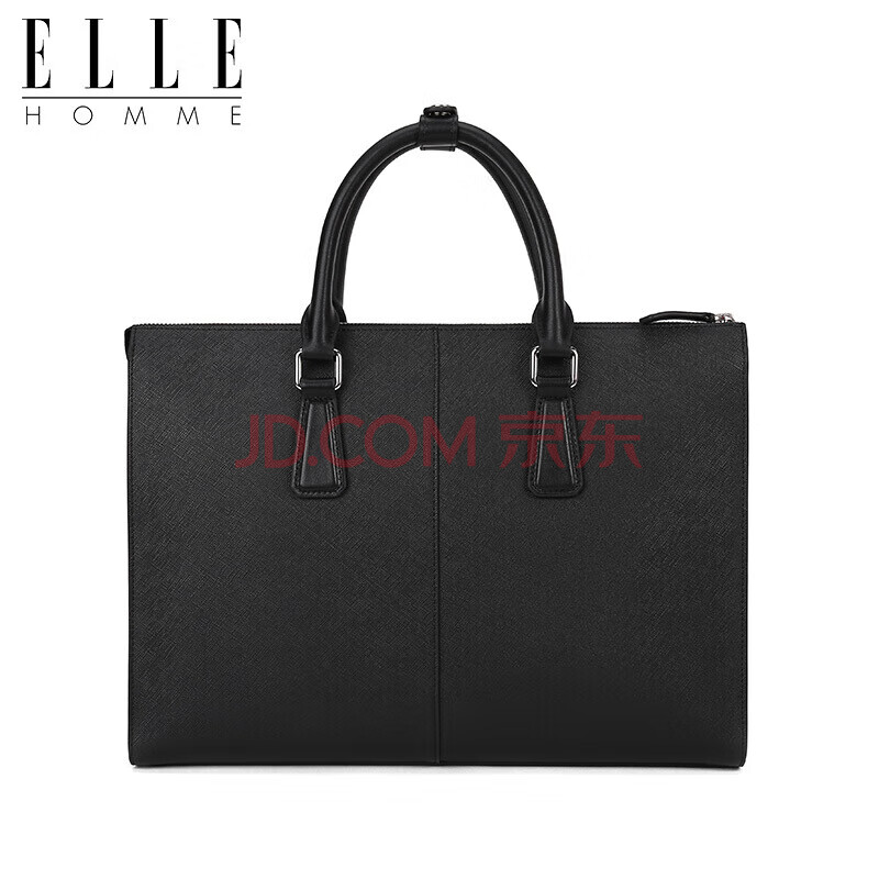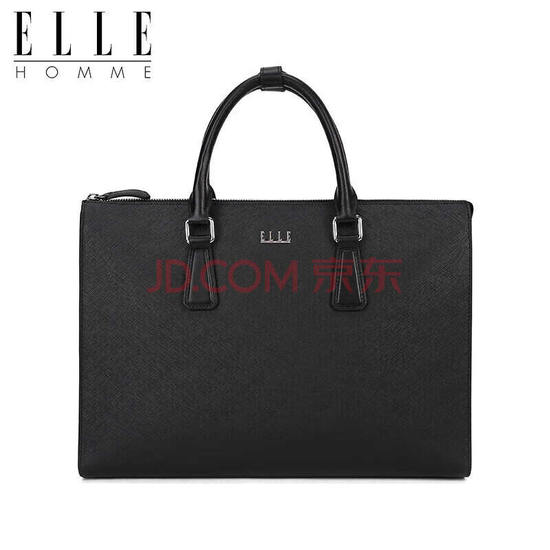 商品相册:ELLE HOMME 男士商务手提公文包 横款牛皮电脑包大容量时尚男包EA988200311黑色第