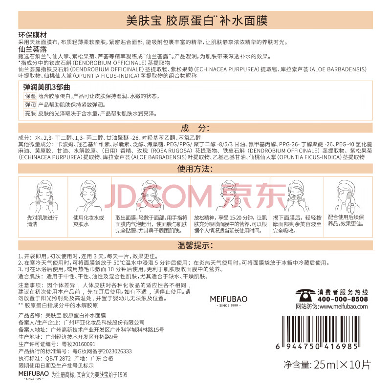 商品相册:美肤宝胶原蛋白补水面膜25g*10片熬夜弹润紧肤补水滋润面膜贴男女第