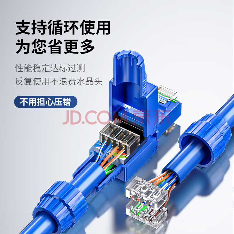 商品相册:山泽 超六类非屏蔽免打水晶头 工程级8P8C免压RJ45电脑网线接头 免工具万兆网络连接器 单个装 MDC64第