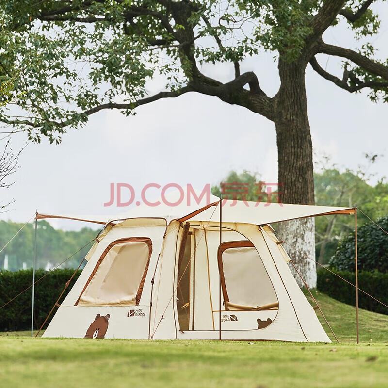 商品相册:牧高笛(MOBIGARDEN)LINE FRIENDS联名 露营自动帐篷空间版145 NX21561003 布朗熊米白第