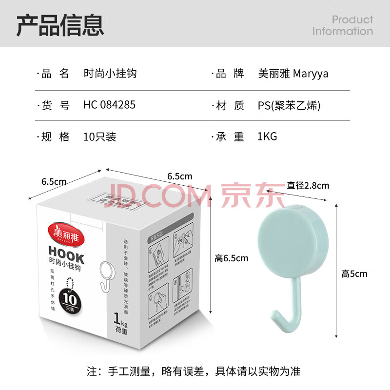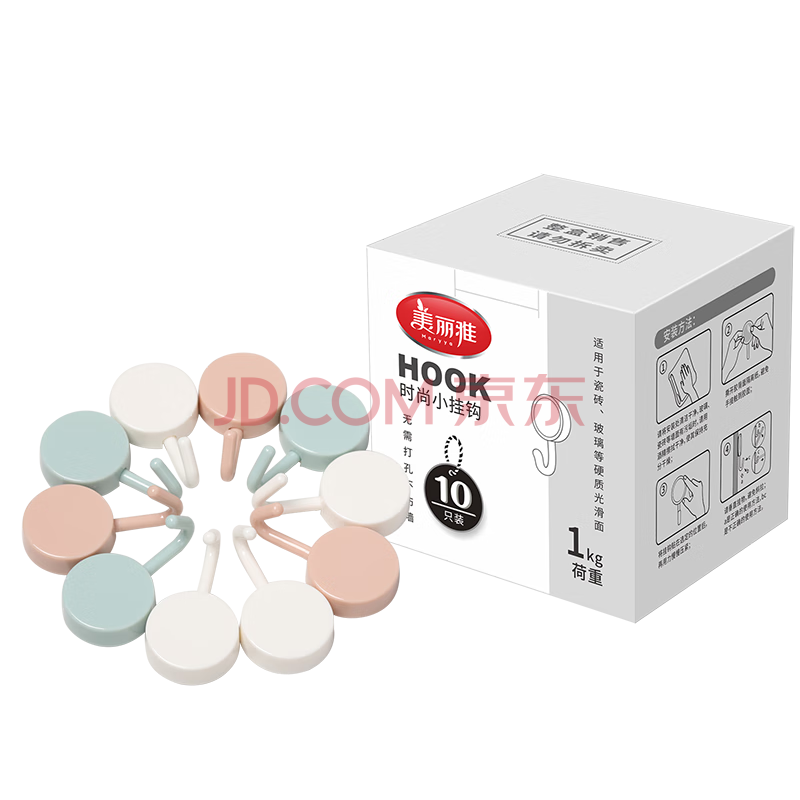 商品相册:美丽雅 挂钩免打孔无痕强力粘钩浴室厨房挂衣服毛巾免钉 10只第1张/共7