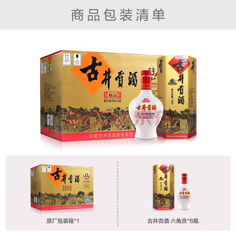 商品相册:古井贡酒 六角贡 浓香型白酒 45度 500mL*6瓶 整箱装 口粮酒第