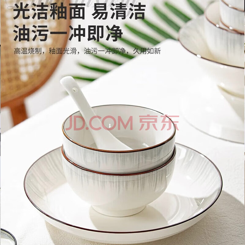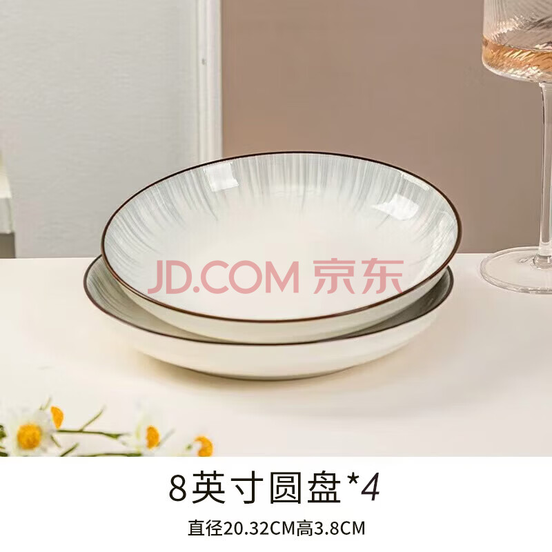 商品相册:传旗 餐盘 8英寸4只 北欧风陶瓷 牛排饺子饭盘子家用餐具 银河第