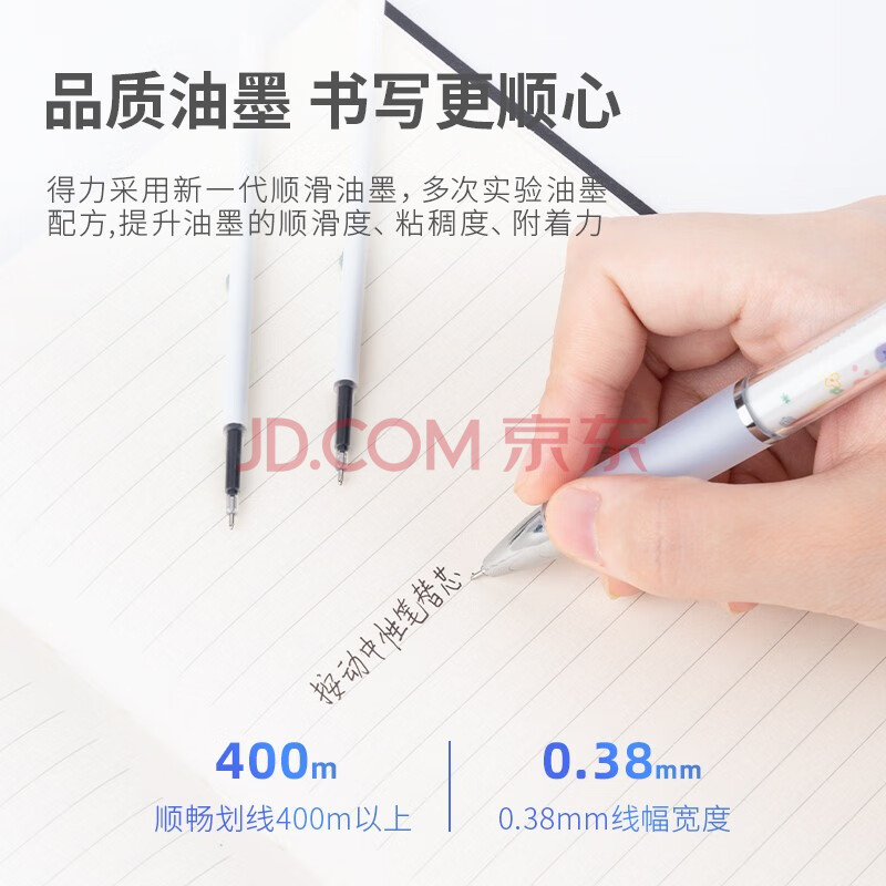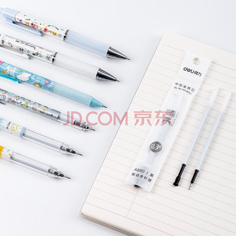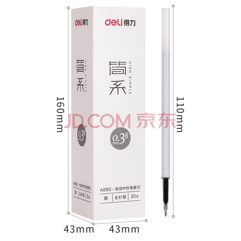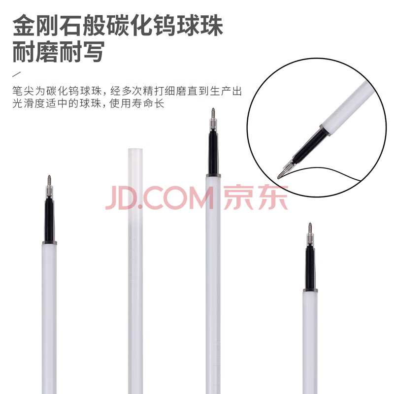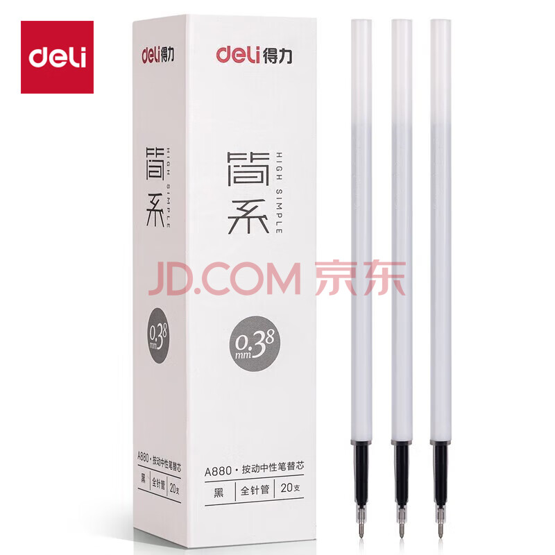商品相册:得力(deli)【热门商品】简系按动中性笔芯 按动签字笔替芯 0.38mm全针管头 黑色20支/盒 A880第